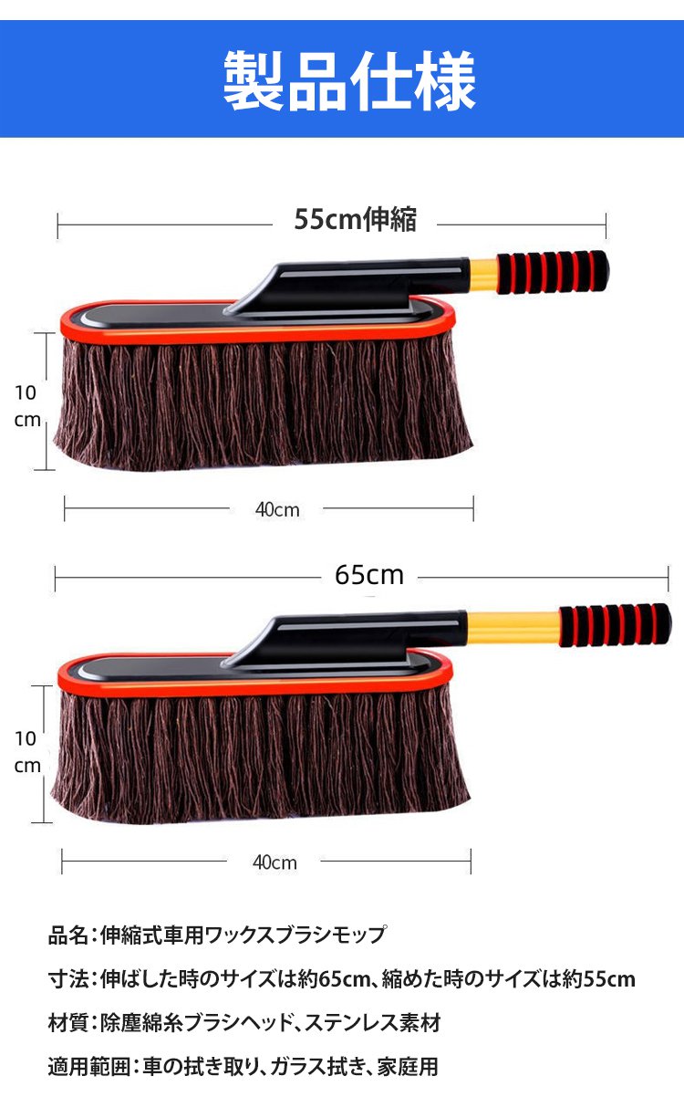 伸縮式車用ワックスブラシモップ